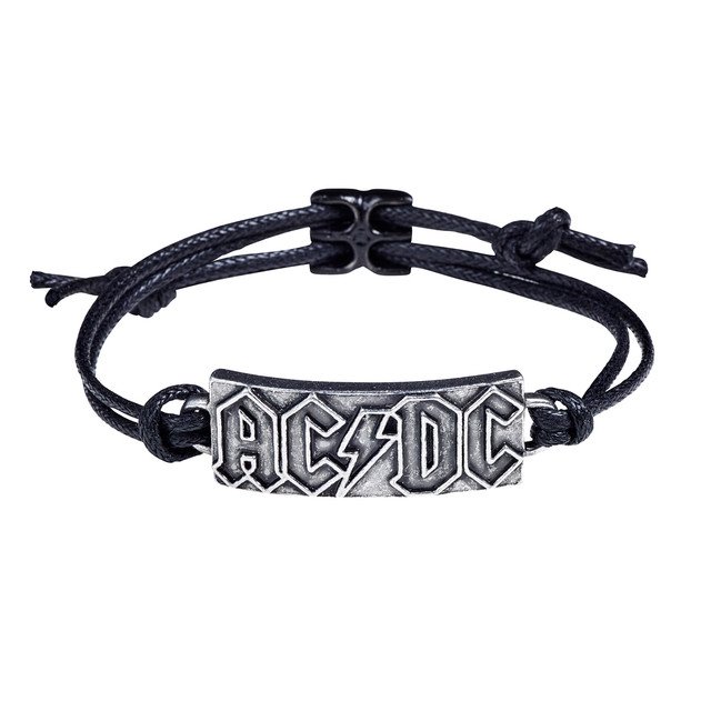 Pewter AC/DC Leather Bracelet Rock Jewelry