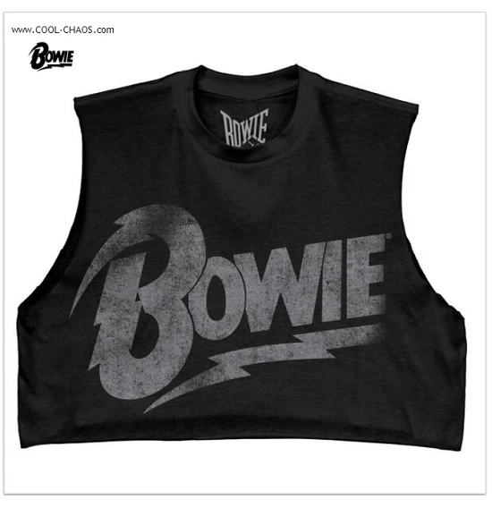 Women’s Black Muscle Crop Top Officially licensed David Bowie apparel This is the perfect top for Summer Fit: This crew neck shirt is comfortable and lightweight. Made of: 100% Cotton Care: Machine wash cold inside out with like colors and tumble dry low.